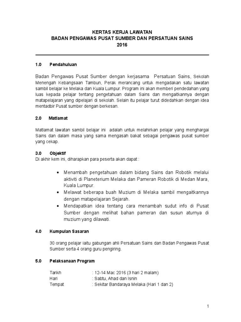 Kertas Kerja Lawatan Sambil Belajar Pdf